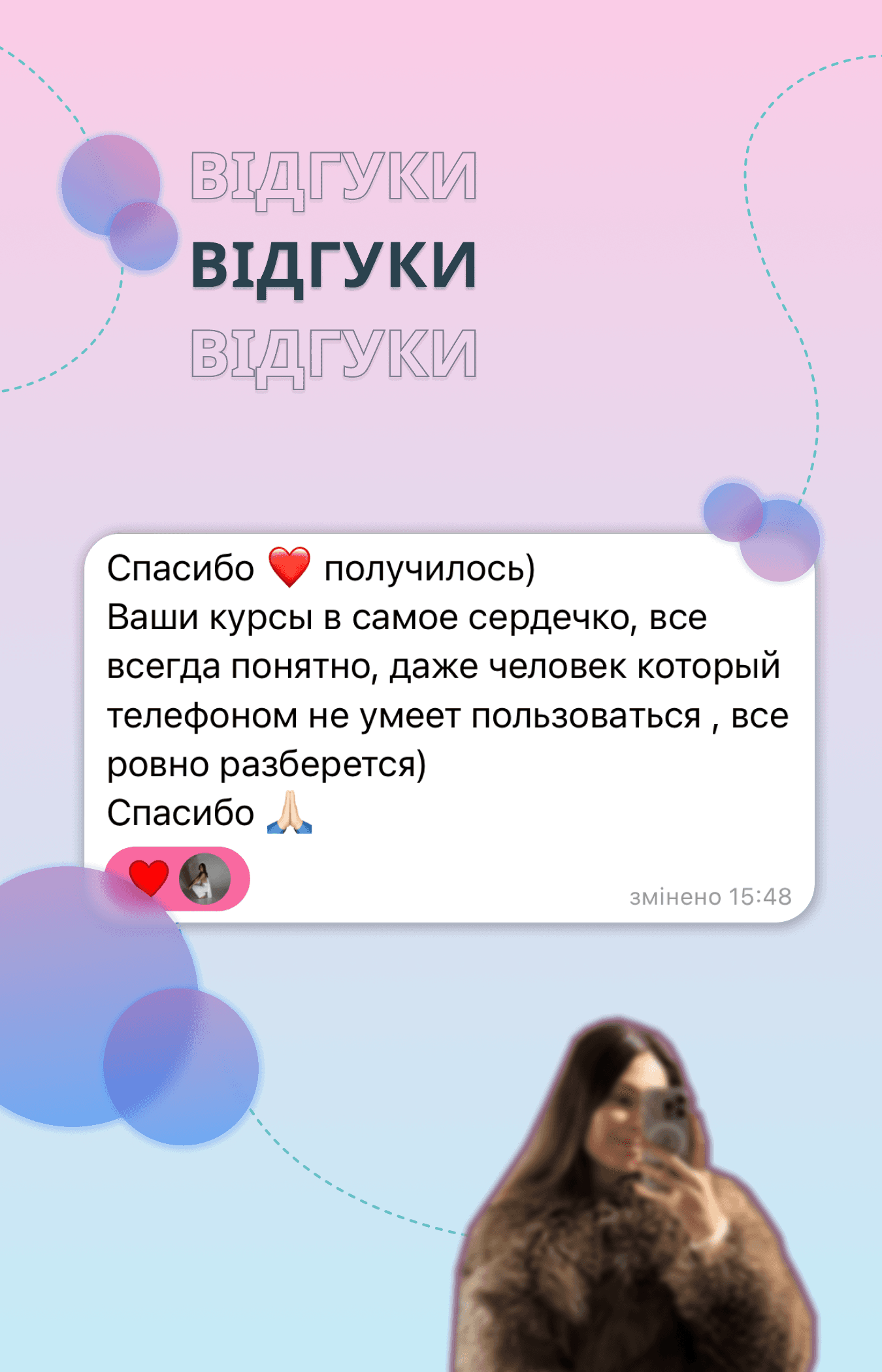 Зворотній зв'язок без обмежень (можна до мене звертатися, якщо є питання/складнощі)